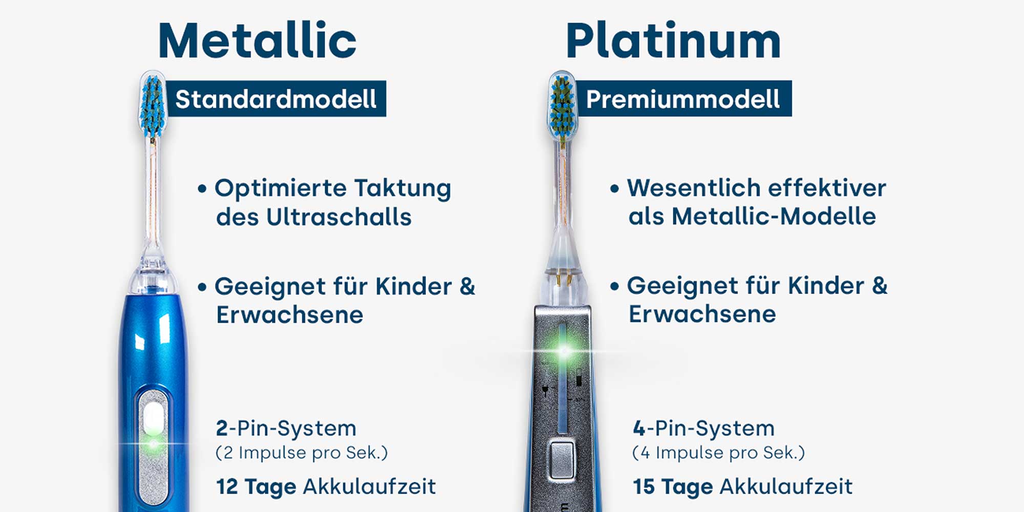 Was ist der Unterschied zwischen der Metallic, Platinum und Go Ultraschallzahnbürste?