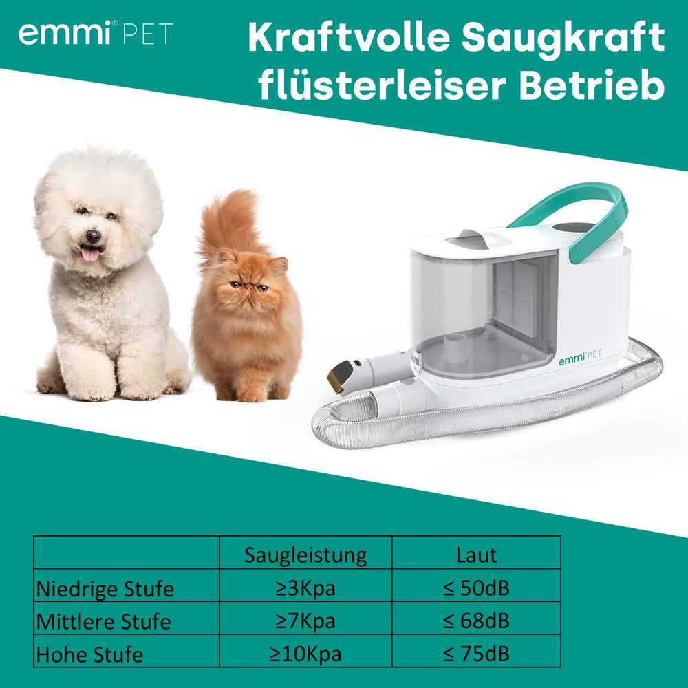 Ein sauberes Zuhause zu bewahren kann für Haustierbesitzer eine Herausforderung sein. Tierhaare auf Teppichen, Möbeln und Hartböden sind allgegenwärtig. Die Lösung? Das emmi-pet Grooming Kit vereint Schermaschine, Kamm und Tierhaarstaubsauger in einem Gerät – ein beutelloser Staubsauger mit Schermaschine, der speziell für die Anforderungen von Hund und Katze entwickelt wurde, um Tierhaare effizient zu entfernen, zu schneiden und Gerüche zu minimieren.