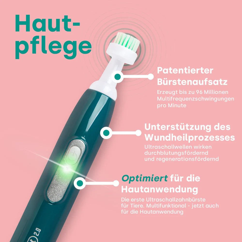 - Der Ultraschall wird durch die Taktungsrate an die zu behandelnde Stelle (Haut/Fell oder Zähne) befördert. Durch die Erhöhung der Taktungsrate wird der Ultraschall demnach gleichmäßiger an die betroffende Stelle befördert. Dies führt im Umkehrschluss zu einem verbesserten Reinigungsergebnis und macht das Upgrade auf das emmi-pet Hautpflege-Set 2.0 so wirkungsvoll.