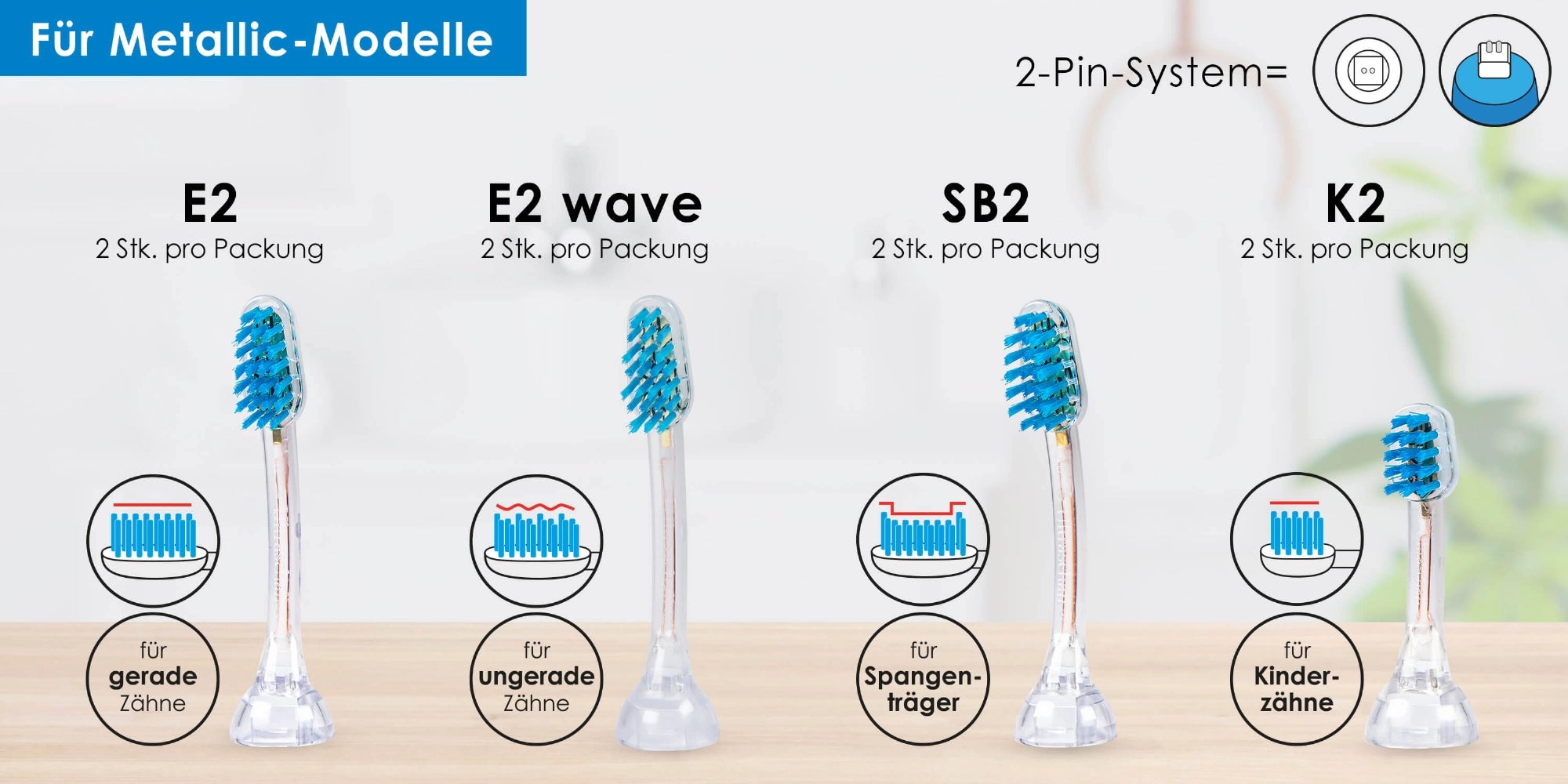 If you have an emmi-dent Metallic , GO or Professional ultrasonic toothbrush, you will need suitable attachments with a 2-pin system. The following are suitable: