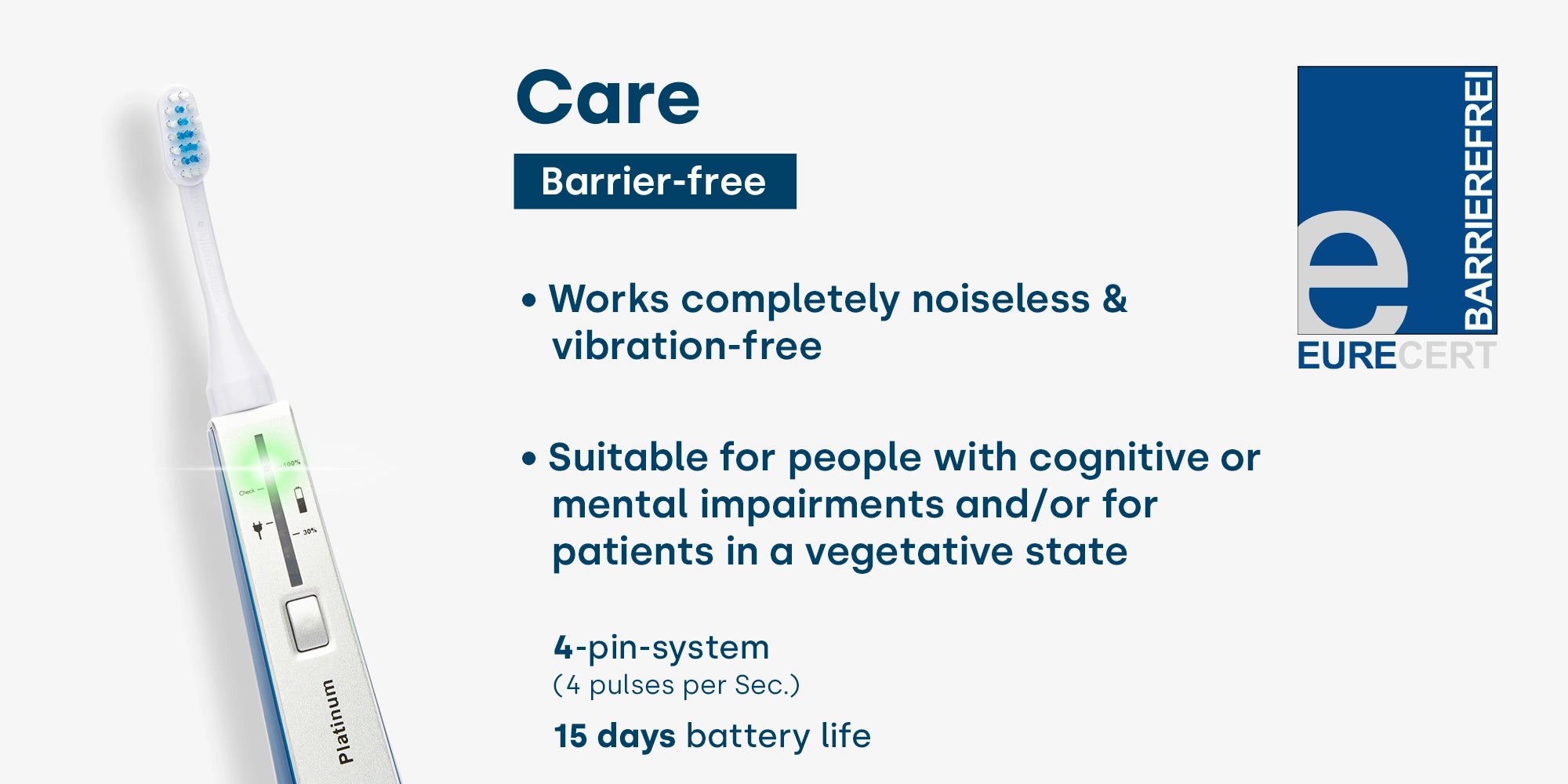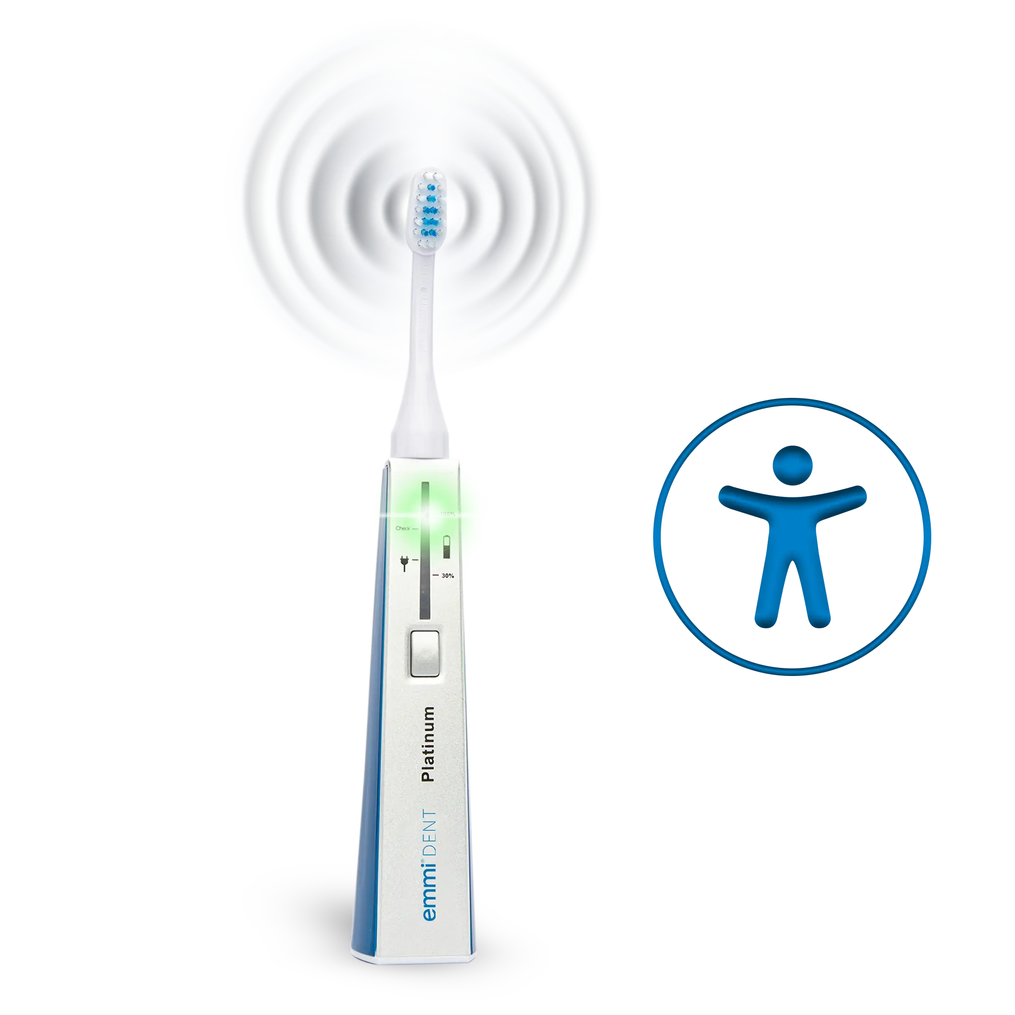 Health begins in the mouth. With our emmi-dent Platinum Care we are revolutionizing daily dental care for people with disabilities or limited mobility . Oral hygiene that is not only impressive in terms of thoroughness, but also in terms of simplicity, accessibility and time savings for caring third parties. Our Platinum Care ultrasonic toothbrush represents the latest ultrasound-based technology.
