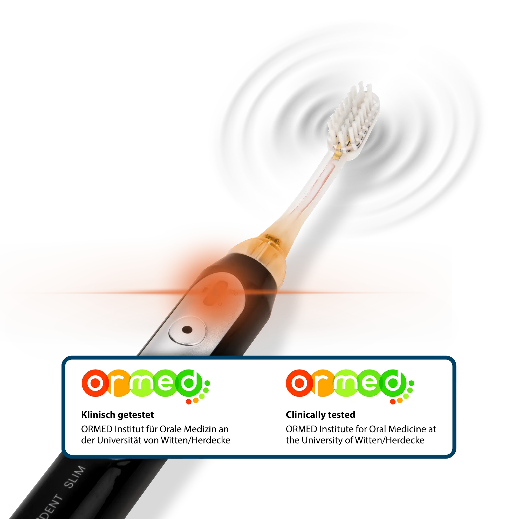 The functionality of our emmi-dent ultrasonic toothbrushes was tested as part of a clinical study by the University of Witten/Herdecke . Prof. Dr.hcP Gängler, Managing Director of the Oral Medicine Institute, assessed the test of our emmi-dent ultrasonic toothbrushes with the following words: "Cleaning teeth using ultrasound and without brushing safely and thoroughly removes plaque and biofilm. Brushing damage to tooth necks, gums and teeth can be prevented thanks to this technology. Toothbrush that is particularly suitable for people with sensitive teeth. The abrasion-free application ensures that gum injuries can be actively avoided. In addition, regular use actively promotes the reduction of gingivitis."