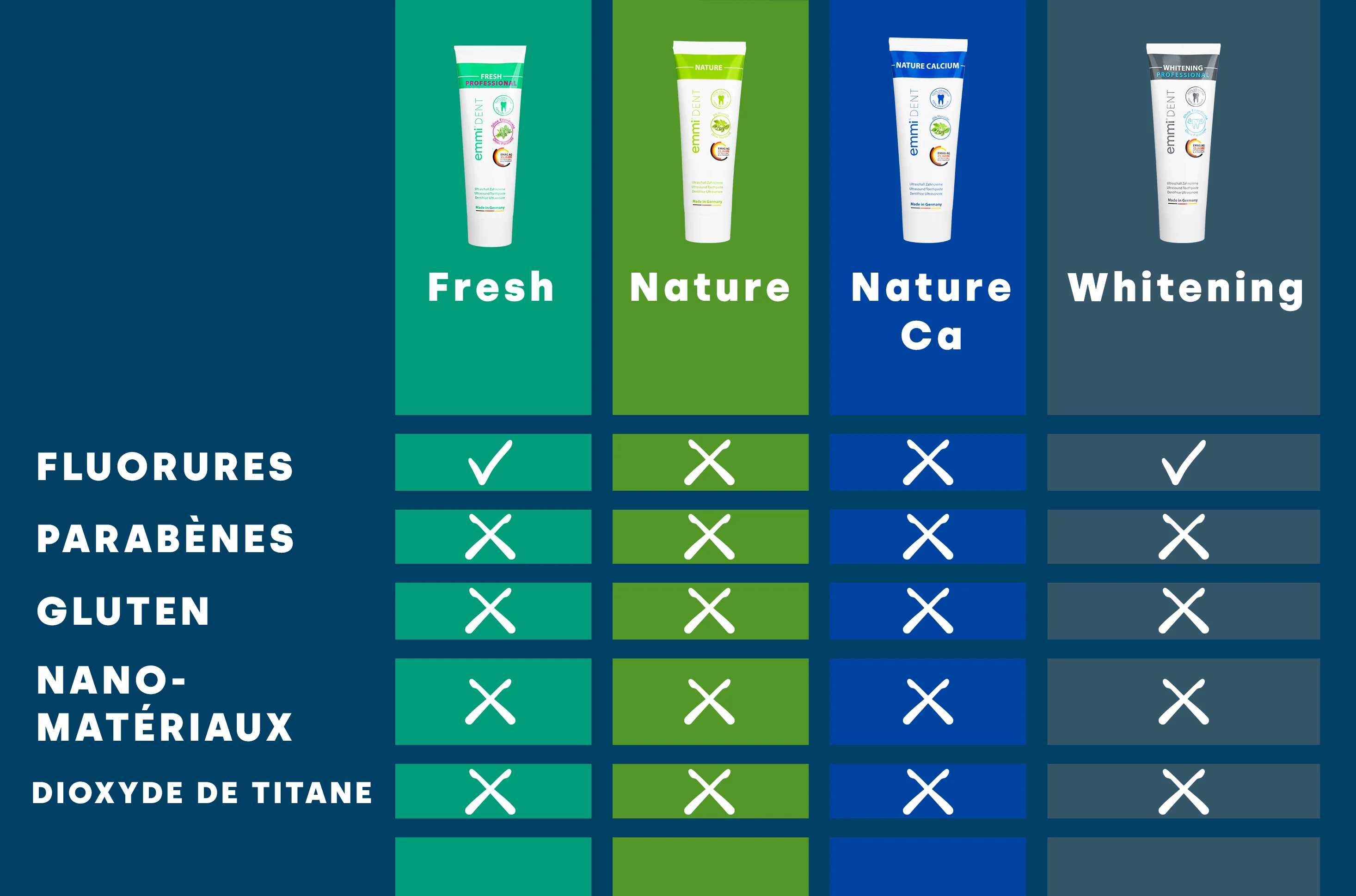 Nature - Le dentifrice ultrasonique emmi-dent Nature a été spécialement développé pour ceux qui préfèrent le sans fluor. Il nettoie en douceur et en soin vos dents et vos gencives. Profitez d'une expérience de nettoyage naturelle.