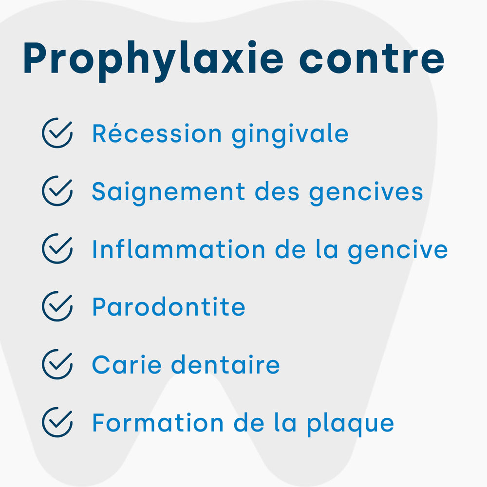 Faites-vous attention aux ingrédients lorsque vous achetez du dentifrice ? La plupart des dentifrices contiennent du dioxyde de titane, un élément chimique qui peut provoquer une irritation des muqueuses et des dents sensibles chez certaines personnes. Si vous voulez être sûr, vous pouvez acheter un dentifrice sans dioxyde de titane. Nous proposons un dentifrice aussi simple à utiliser qu'un dentifrice ordinaire. Pour des soins dentaires optimaux, le type de nettoyage est crucial. Vous souhaitez vous passer du dioxyde de titane ? Alors notre dentifrice est le meilleur choix pour vous. Nous utilisons du xylitol et de la silice, qui ont des propriétés nourrissantes et préventives contre les caries.