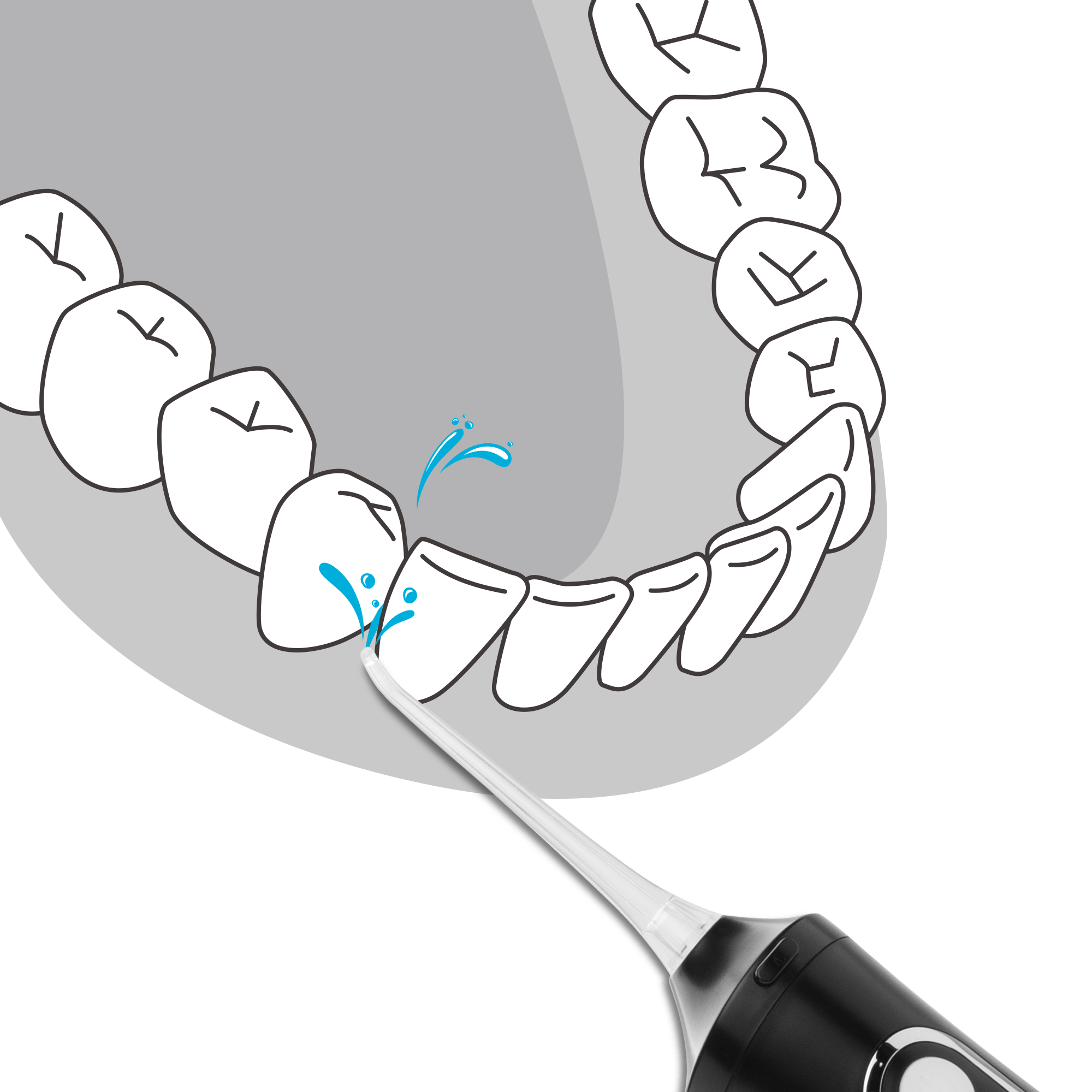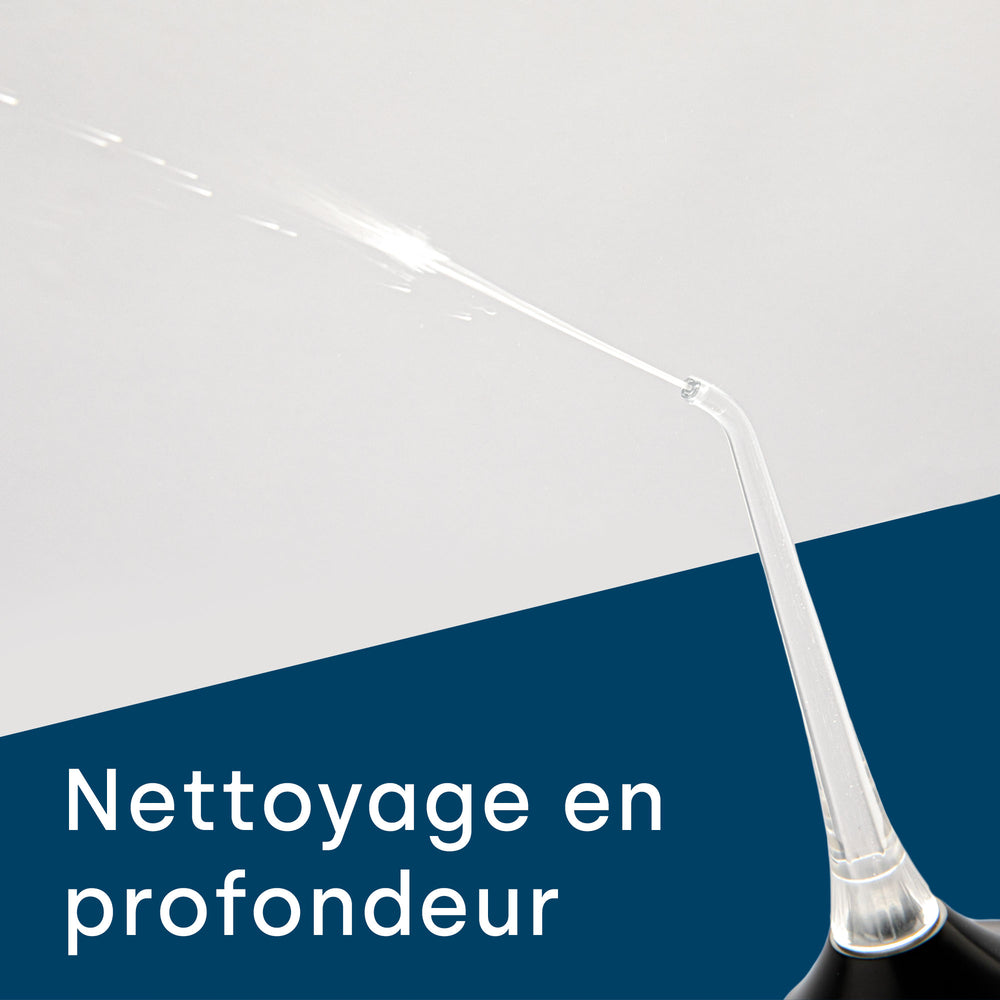 Un nettoyage soigneux des dents avec une brosse à dents à ultrasons donne d’excellents résultats le matin et le soir. Cependant, les espaces entre les dents sont souvent négligés, où les particules alimentaires et les bactéries peuvent s’accumuler, favorisant la formation de plaque et de carie dentaire. En complément des soins dentaires quotidiens, nous recommandons l'utilisation d'un irrigateur buccal.