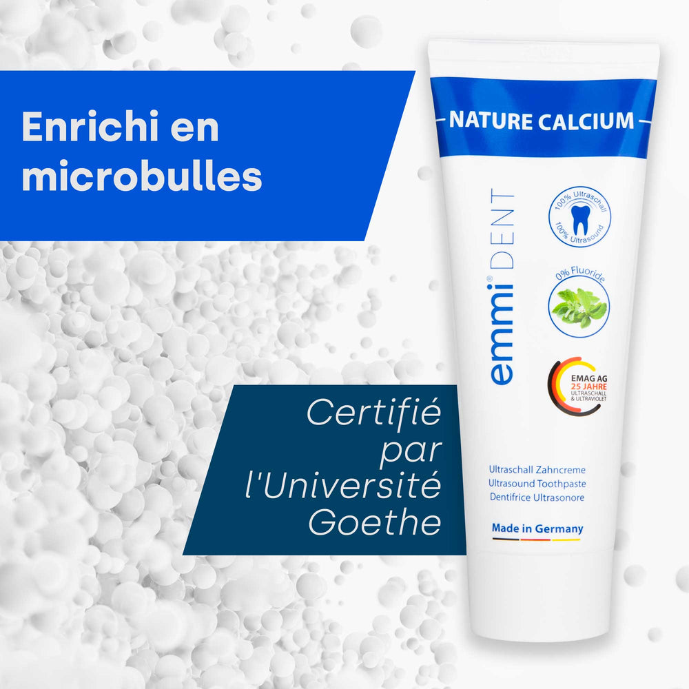 Ne manquez pas l’occasion d’essayer le dentifrice ultrasonique emmi-dent Nature Calcium et de renforcer vos dents naturellement. Commandez dès aujourd'hui et profitez des bienfaits de soins dentaires de haute qualité sans fluor, mais avec la puissance du calcium.