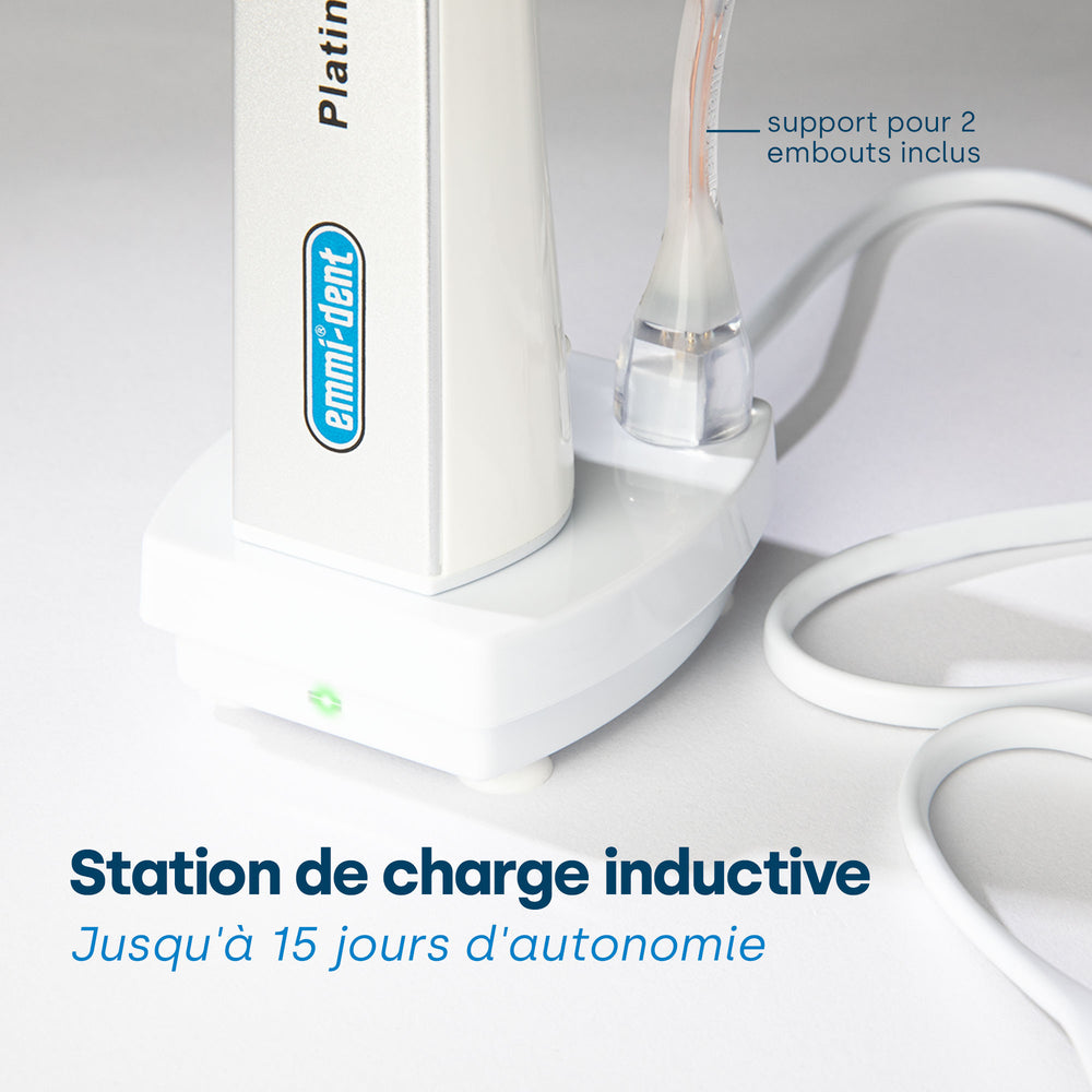 Grâce à la technologie à ultrasons sans abrasion, l'emmi-dent PlatinumCAM est particulièrement adapté aux personnes ayant des gencives sensibles, des implants, des appareils dentaires ou des maladies dentaires telles que la parodontite. Les vibrations douces nettoient en douceur sans irriter les dents ni les gencives. Cela gardera vos dents en bonne santé sans endommager l’émail.