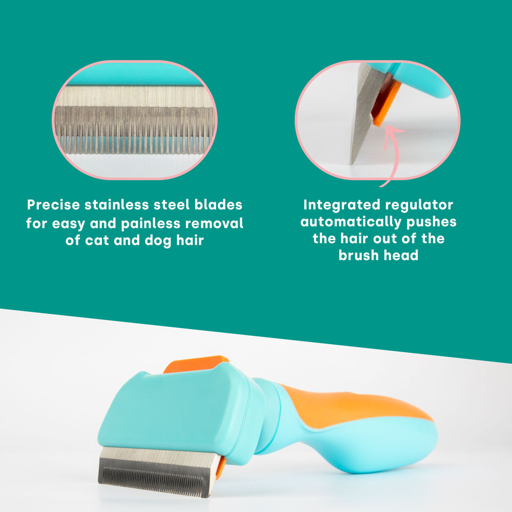 - Réduit la perte de poils jusqu'à 90 % : En éliminant efficacement le sous-poil, la perte de poils est réduite jusqu'à 90 %, ce qui signifie un environnement plus propre et moins de poils sur les vêtements et les meubles.