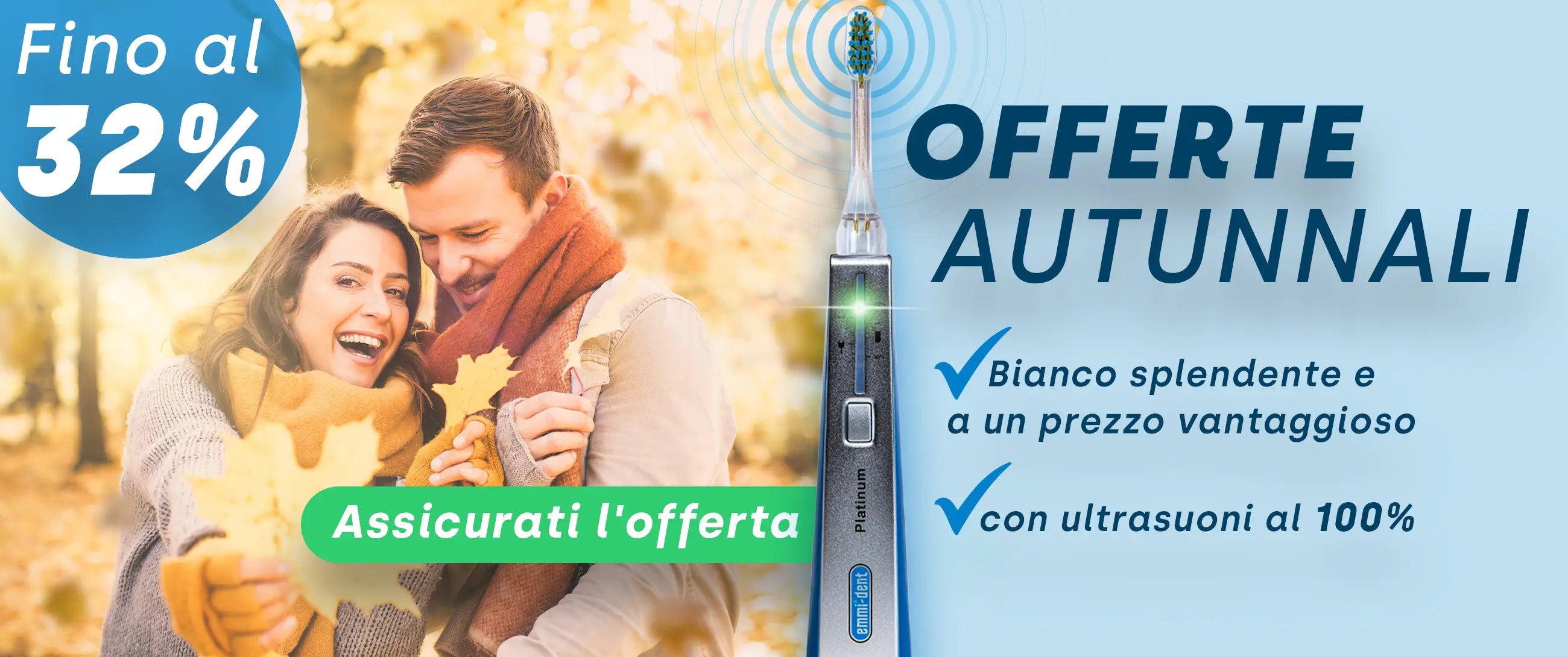 Inoltre, gli ultrasuoni hanno un effetto cosmetico: le macchie causate da vino, nicotina o cibi particolari vengono gradualmente schiarite, e in modo particolarmente delicato. È possibile intensificare questo effetto utilizzando in aggiunta il dentifricio sbiancante ad ultrasuoni Emmi-Dent . Si prega di notare che non si dovrebbero mai usare esclusivamente dentifrici sbiancanti. Si consiglia di utilizzare dentifrici sbiancanti 2-3 volte alla settimana come dentifricio aggiuntivo. Questo vale per tutti i dentifrici sbiancanti.