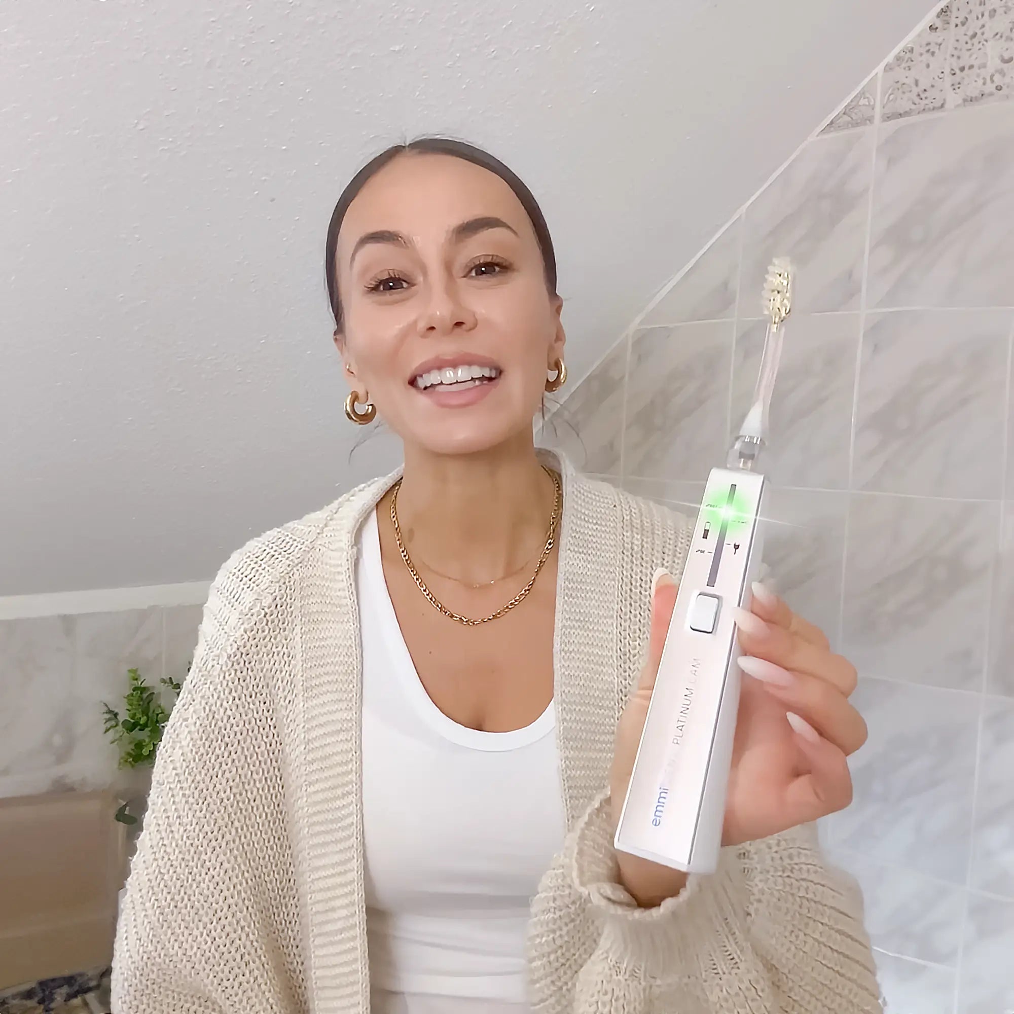Los cepillos de dientes ultrasónicos son la cumbre de la innovación en el cuidado dental y ofrecen un rendimiento de limpieza que va mucho más allá de lo que es posible con los cepillos de dientes eléctricos tradicionales. Al elegir el mejor cepillo de dientes ultrasónico, debe prestar atención a los factores que afectan tanto la eficiencia de la limpieza como la facilidad de uso. Nuestro cepillo de dientes ultrasónico emmi-dent Platinum está a la vanguardia de esta revolución tecnológica y cumple todos los criterios de un excelente cepillo de dientes ultrasónico: 100% ultrasónico: a diferencia de los cepillos de dientes sónicos, que se basan en movimientos mecánicos, nuestro emmi-dent Platinum funciona con vibraciones ultrasónicas puras: hasta 96 millones de vibraciones por minuto. Esta alta frecuencia permite una limpieza profunda sin contacto mecánico, minimizando el riesgo de lesiones y ofreciendo resultados de limpieza insuperables. La vibración se puede desactivar: emmi-dent Platinum ofrece la opción de desactivar la vibración. Esto garantiza un cuidado personalizado, ya sea para encías sensibles o para una eliminación intensiva de placa, ¡todo ello sin frotar ni vibrar! Batería de larga duración: con una duración de batería de hasta 15 días cuando se usa dos veces al día, nuestro cepillo de dientes ultrasónico establece nuevos estándares en términos de resistencia y elimina la necesidad de una carga frecuente. Acabado de alta calidad: El emmi-dent Platinum se caracteriza por un potente motor y una carcasa resistente al agua, lo que garantiza un uso duradero y fiable. Diversos cabezales de cepillo: Para combinar con nuestro cepillo de dientes ultrasónico, ofrecemos una selección de cabezales de cepillo que están diseñados para diferentes aplicaciones y necesidades del usuario para permitir una limpieza individual y efectiva. El emmi-dent Platinum se distingue de otros cepillos de dientes ultrasónicos por su tecnología avanzada y su orientación al usuario. Entonces, si está buscando el mejor cepillo de dientes ultrasónico, el emmi-dent Platinum le ofrece una combinación de limpieza eficaz, comodidad y tecnología avanzada que garantiza el máximo rendimiento de limpieza e higiene bucal al cepillarse los dientes.