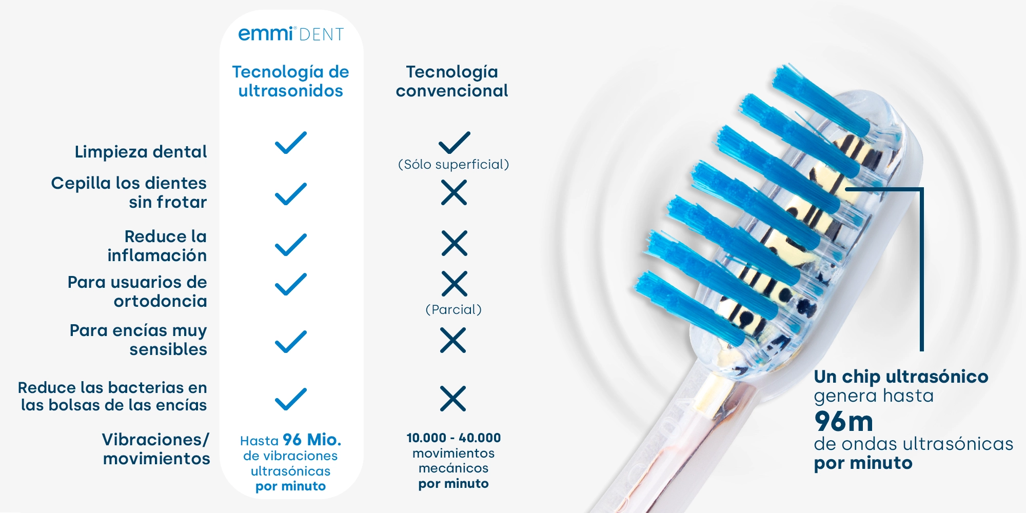 Diferencia con otros cepillos de dientes ultrasónicos:
