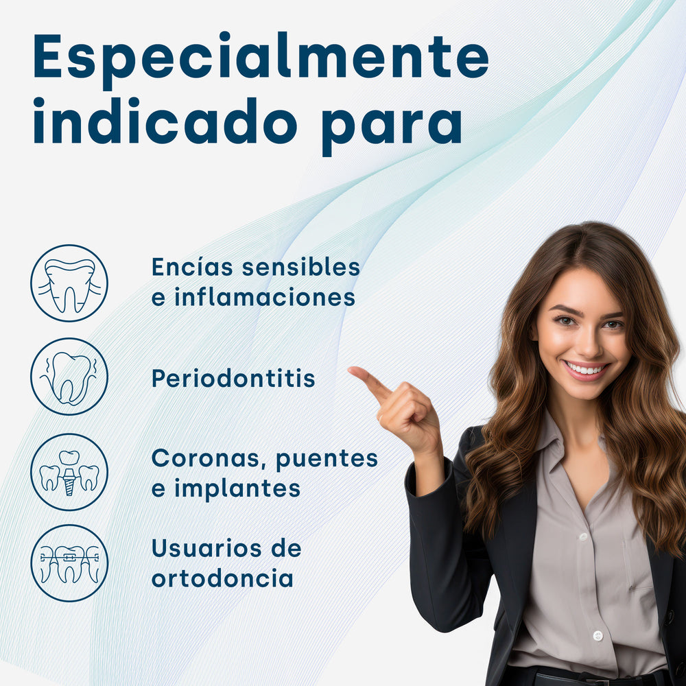 Hemos desarrollado un cabezal de cepillo especial para personas que usan aparatos ortopédicos. Las vibraciones ultrasónicas limpian en profundidad incluso las zonas inaccesibles entre los dientes y los aparatos. Las personas con implantes dentales también se benefician del máximo rendimiento de limpieza de la innovadora tecnología de ultrasonidos.