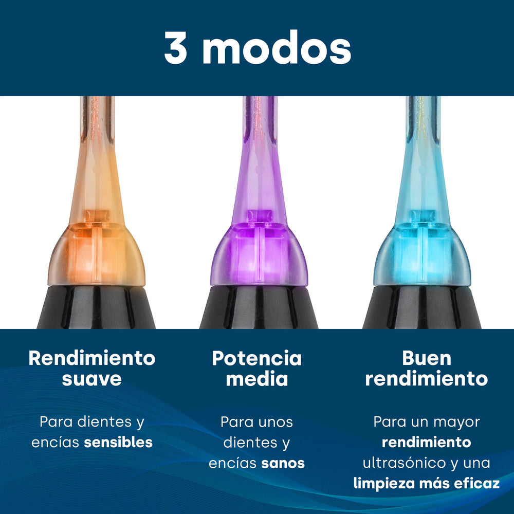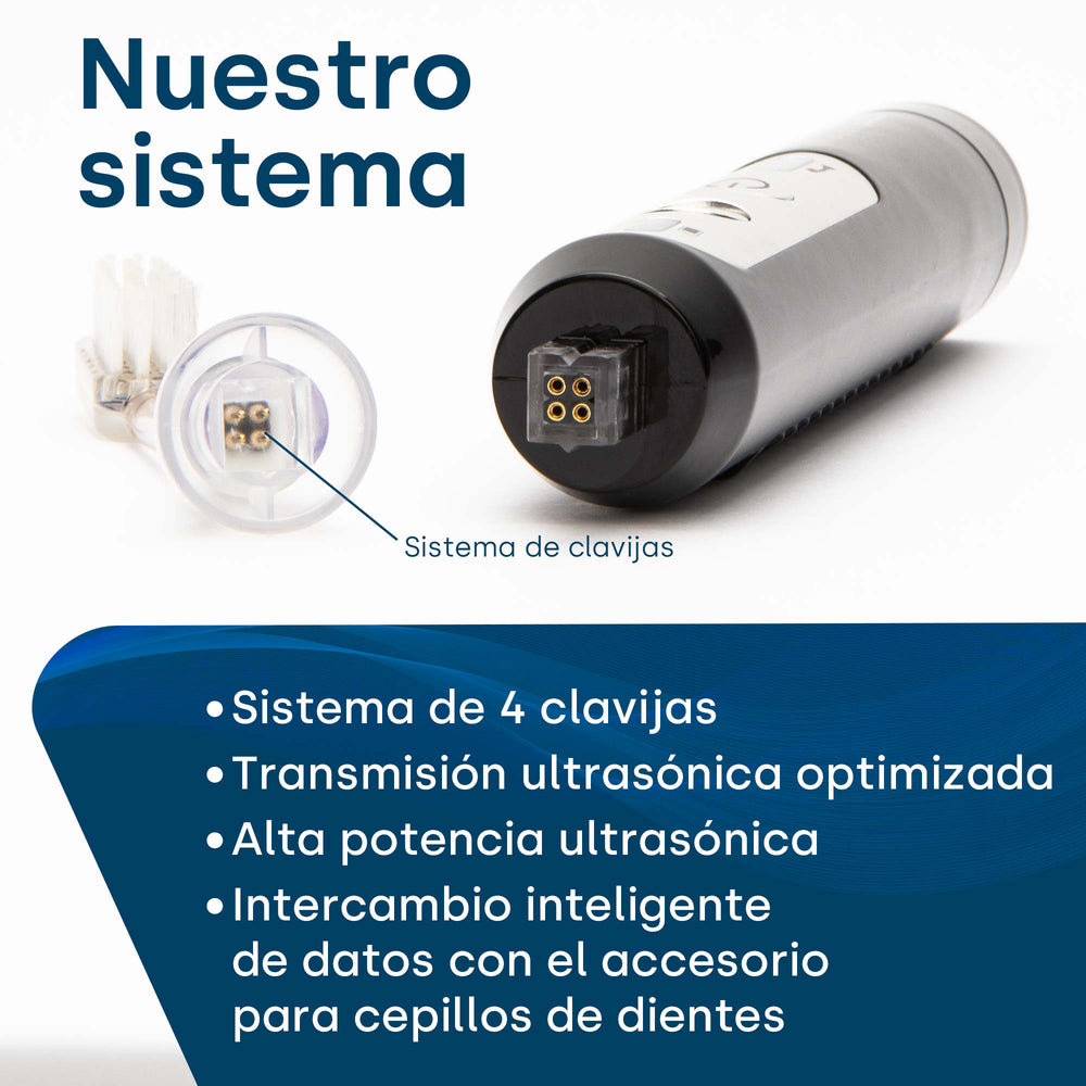El cuidado dental se limita a las áreas de la boca que el cepillo de dientes rotatorio o sónico puede alcanzar. A diferencia de los cepillos de dientes eléctricos convencionales, el cepillo de dientes ultrasónico funciona completamente sin presión transmitiendo vibraciones. Esto significa que toda la cavidad bucal queda limpia a fondo.